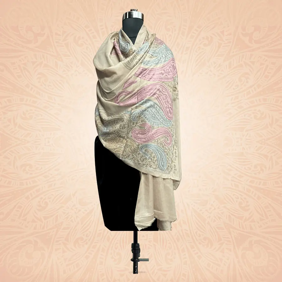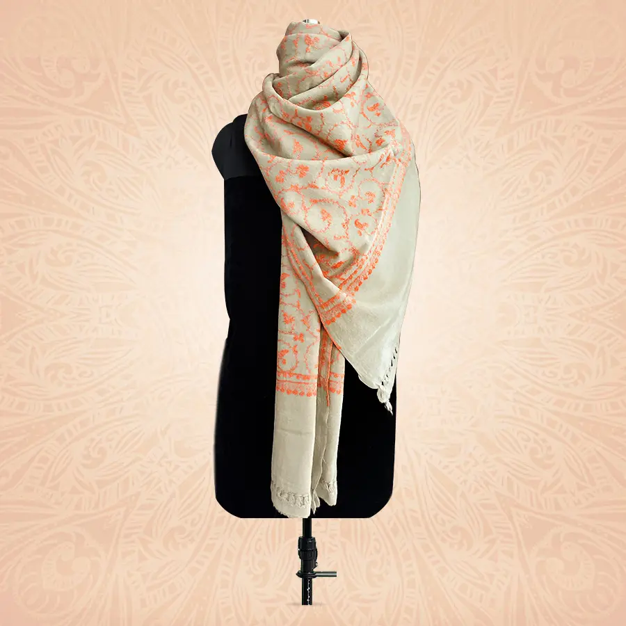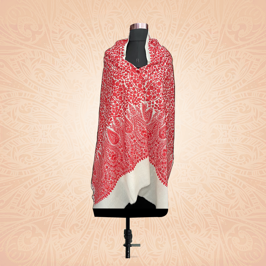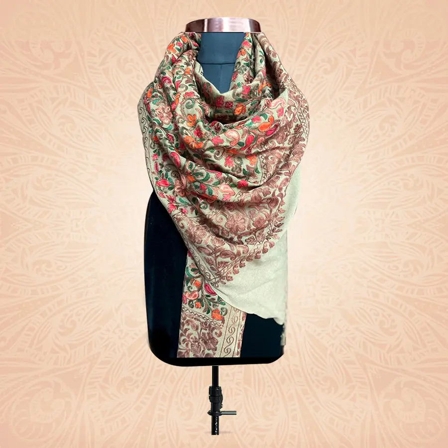 Discover our collection of Embroidered Pashmina Stoles – the very best of Kashmir’s Craftsmanship. Exquisitely hand embroidered and fully handmade, these stoles are the (epitome – can use anther word as too much repetition )of Kashmir’s rich arts and crafts. Each shawl has been (heavily /- aesthetically )embroidered with intricate detail by skilled artisans from the beautiful Kashmir Valley. Our beautiful Embroidered Pashmina Shawls are designed with exquisite needle embroidery craftsmanship on a handmade Pashmina base or machine embroidered.